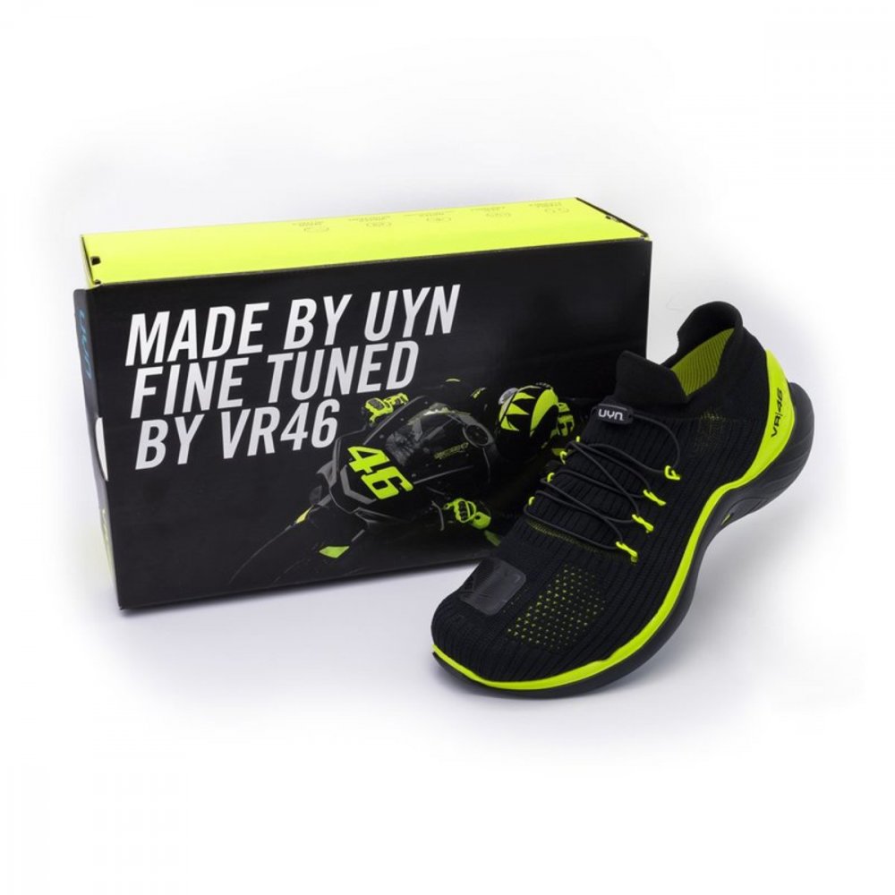 Exkluzivní boty VR46 PRO kombinují lehký a prodyšný svršek s vysoce citlivou podrážkou, která je navržena tak, aby podporovala přirozený pohyb nohy při chůzi díky exkluzivním technologiím UYN. Boty jsou bezešvé, dokážou se pružně přizpůsobit každému pohybu nohy a poskytují správnou stabilitu pro dynamičtější použití. Vnitřní vrstva z biologického vlákna Natex umožňuje chodidlu dýchat a zaručuje bakteriostatický účinek, který omezuje tvorbu nepříjemných pachů.