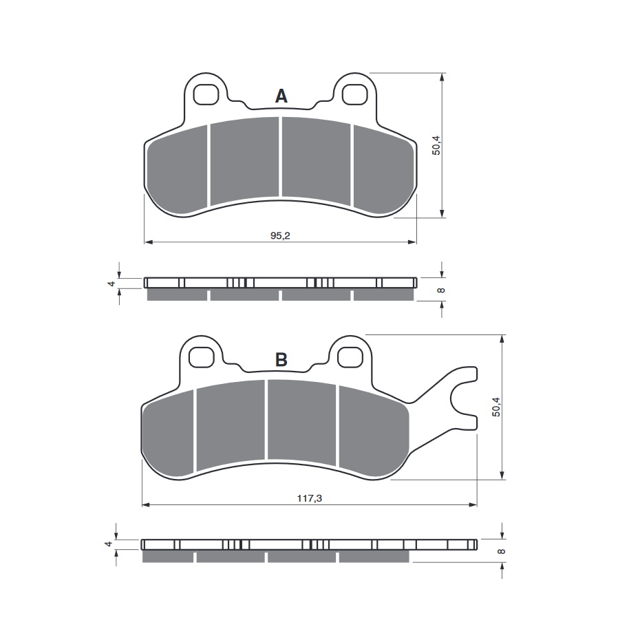 Sintrované brzdové destičky pro sportovní použití nebo závody. Homologace TÜV.