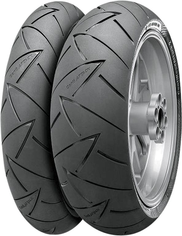 ContiRoadAttack 2 Sport Touring Radial TireFeatures Continuous Compound Technology a single compound is used that through a temperature-controlled curing process delivers the benefits of a multi-compound tire without the abrupt transition between the different compounds that other multi-compound tires are known for; Center Tread Area, wear resistant = Mileage; Shoulder Tread Area = Increased rukoje from center to shoulder; Continuous Transition from Center to Shoulder = Smooth and predictable performance Traction Skin, the revolutionary new micro-toughness of the tread, optimizes the mechanical adhesion and offers the fastest break-in period in the market Revolutionary technology that offers a level of grip, confidence, mileage and dynamics never known before in the sport-touring radial market Road Attack 2 GT features special construction design of the carcass, which improves the stability and handling on heavy touring bikes Features DynamicRideTechnology, a patented ocel řemen construction with a unique contour to improve overall handling and control "Black Chili" compound for quick warm-up, short braking distance on wet and dry roads Tubeless (TL) Blackwall Road Attack 2 for street enduro motorcycles.