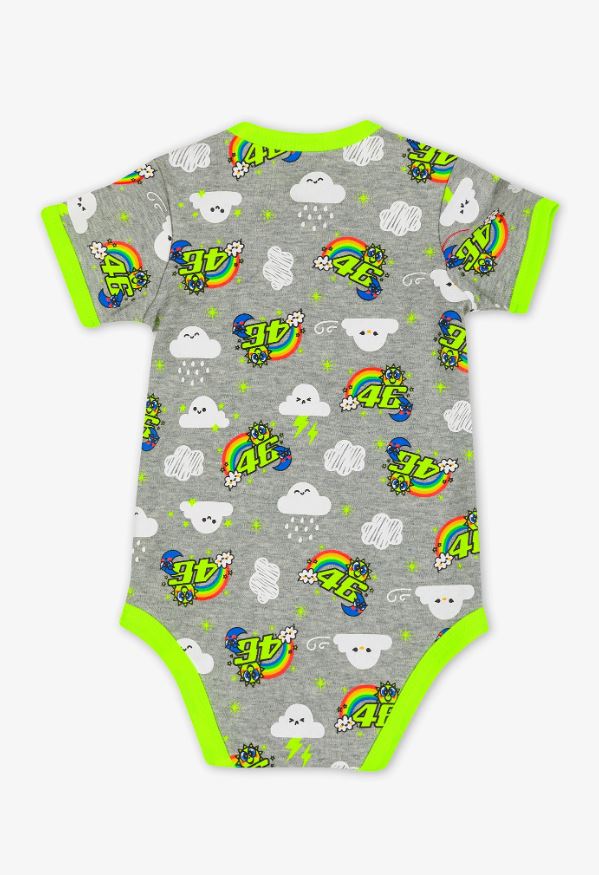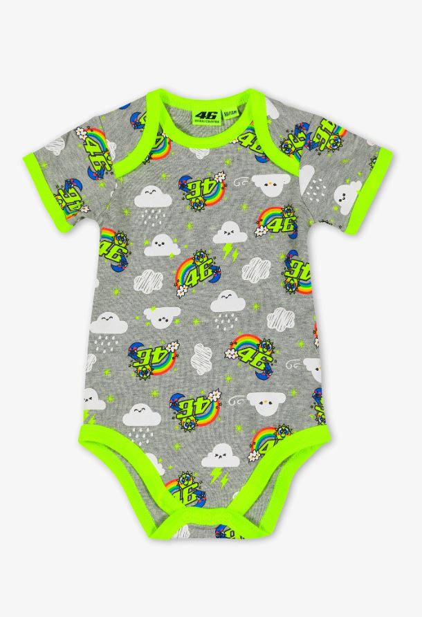 - Dětské body z kolekce VR46 Classic 2022 od Valentina Rossiho z bavlny. Na hrudi je číslo 46 Valea a pěkná karikatura Slunce a Měsíce.