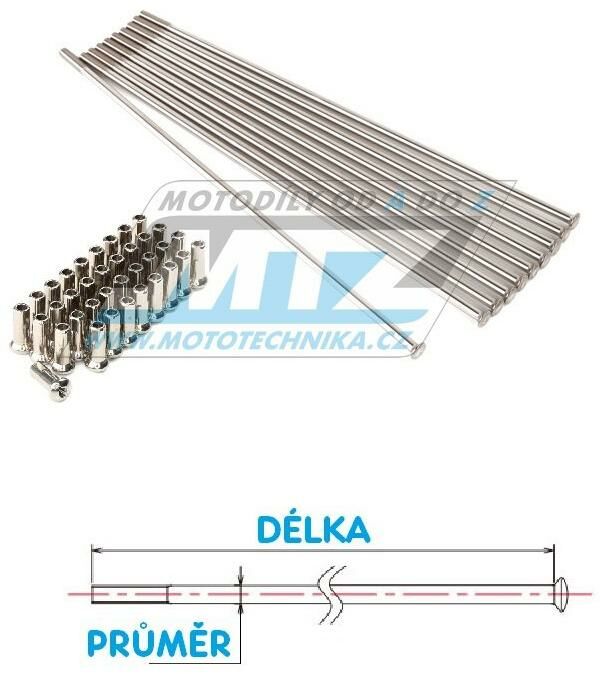 Drát/Špice včetně niple pro výplety motocyklových kol- univerzální drát do kola (špice do kola) bez ohybu- přímá univ...