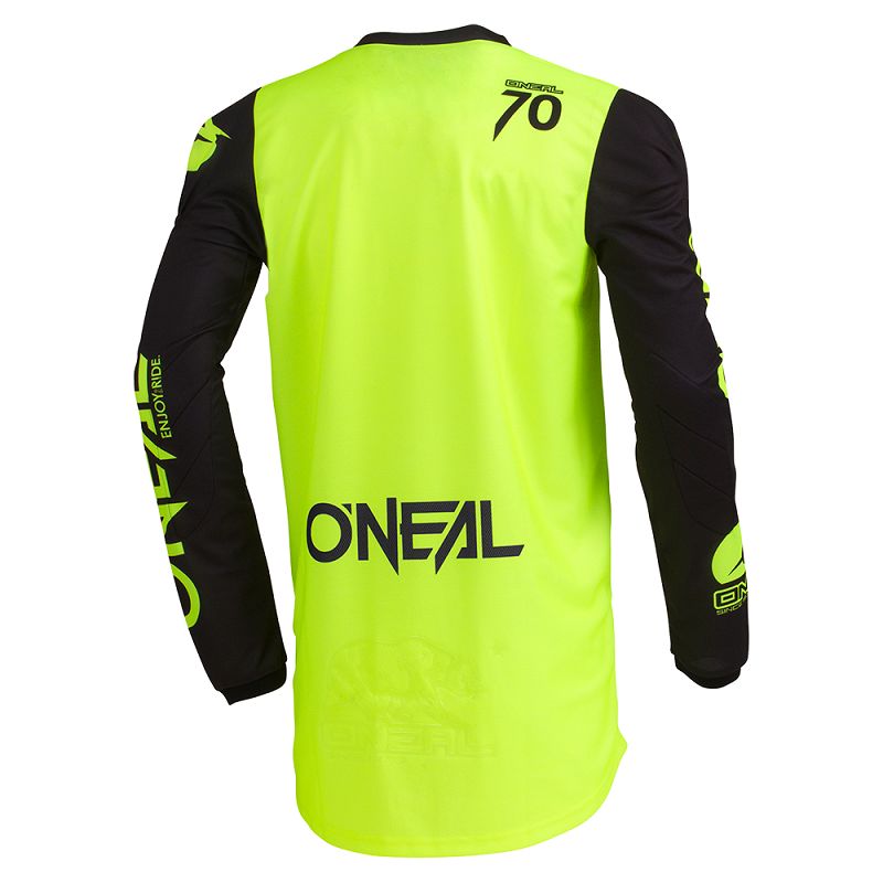 Dres pro MX a MTB. Neblednoucí grafika díky sublimačnímu potisku. Materiál velmi dobře odvádí vlhkost, absorbuje pot. Lokty jsou polstrované a chráněné gumovým potiskem. Prodloužená zadní část se silikonovým potiskem brání vytahování dresu z kalhot. Dres má extrémně flexibilní límec, kompatibilní se všemi chrániči krční páteře.