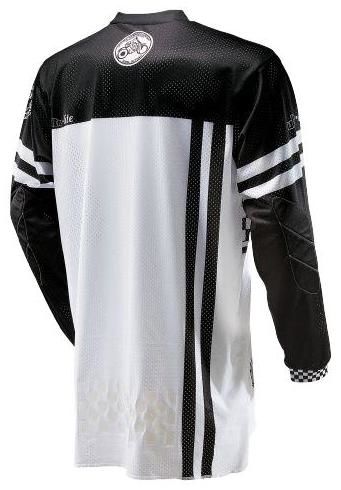 Dres pro MX a MTB v retro designu. Neblednoucí grafika díky sublimačnímu potisku. Materiál velmi dobře odvádí vlhkost, absorbuje pot. Polstrované a prošívané lokty. Prodloužená zadní část se silikonovým potiskem brání vytahování dresu z kalhot. Dres má extrémně flexibilní V-límec, kompatibilní se všemi chrániči krční páteře.