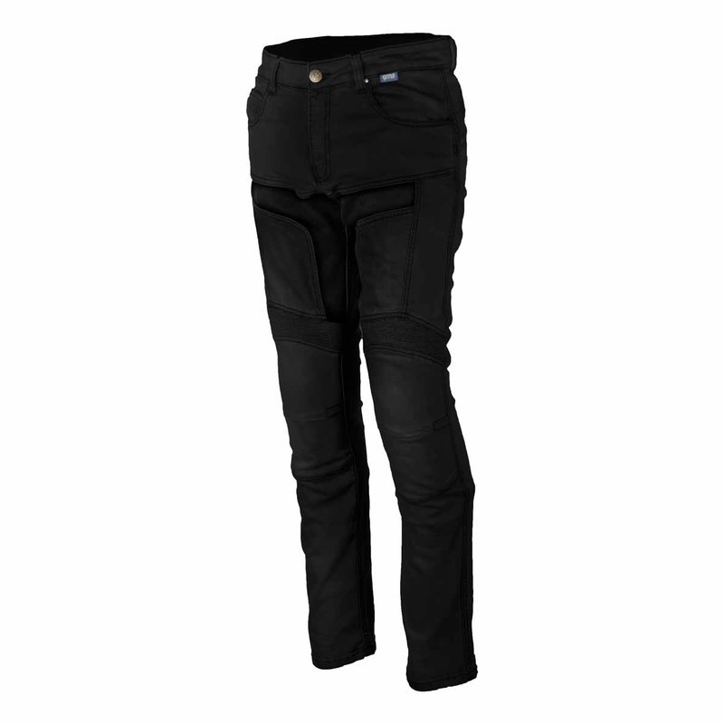 Pohodlné motocyklové džíny klasického střihu s 5 kapsami. Kevlarová podšívka na exponovaných místech a CE certifikované chrániče zajišťují vysokou míru bezpečnosti při jízdě na motocyklu. Díky strečovým panelům a příměsi elastanu se džíny snadno přizpůsobí jizdní pozici na motorce a neomezují vás v pohybu.