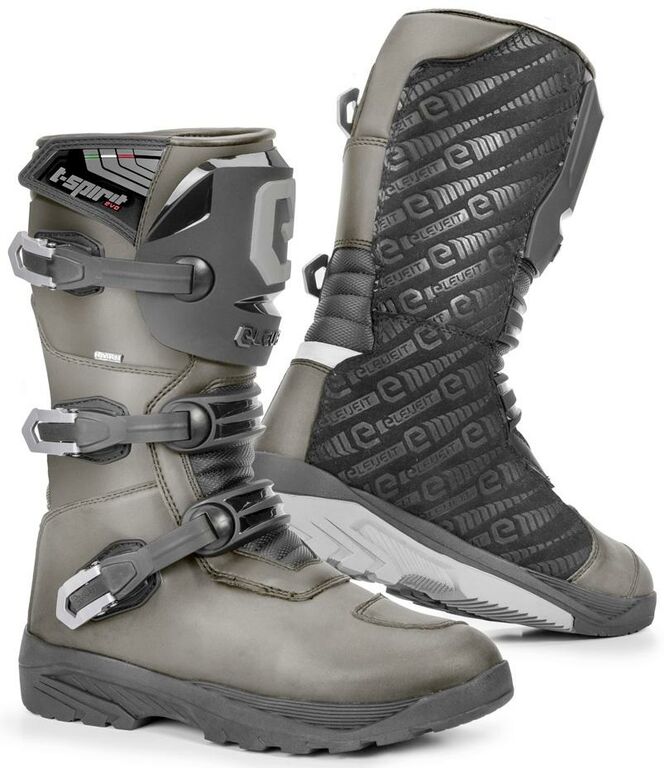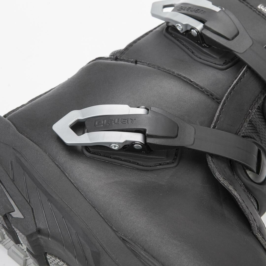 Cestovní, offroadové a Adventure boty, vysoké pohodlí a bezpečnost, nubuková kůže, technická voděodolná prodyšná membrána, CE-certifikované PU chrániče holení, kotníků, špiček a pat, hliníkové přezky, dvousměsová gumová podrážka