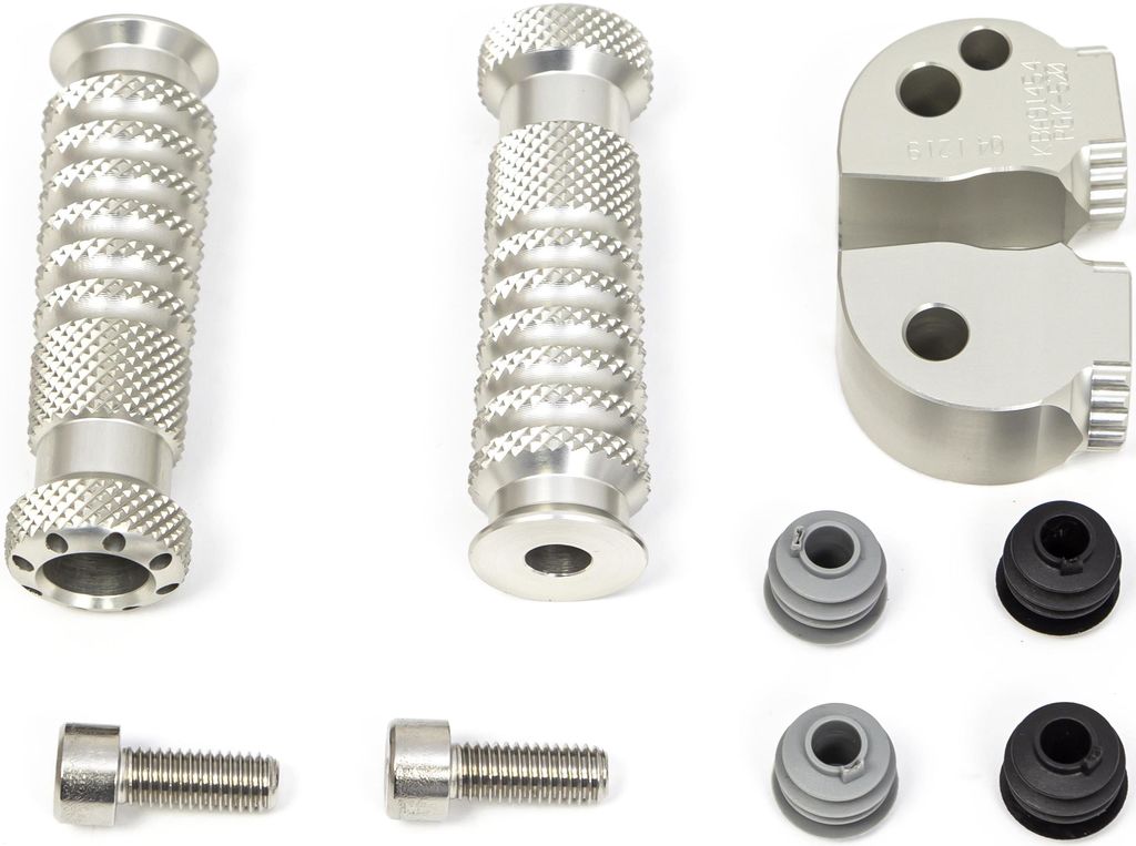 Footrest KitThe classic sport foot pegs (length 80mm, high rukoje level surface) for the driver position are quick and easy to install on the original mounting positions of the bike. The extension kits that can be used to adjust the driver foot pegs within 360 degrees (divided into 24 individual positions) by 20mm.