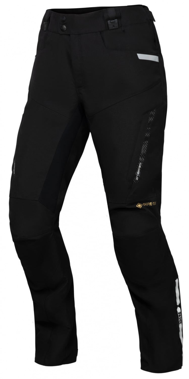 Vysoce kvalitní a velmi komfortní voděodolné textilní kalhoty s GoreTex® membránou, vyrobené z iXS strečového materiálu, který se skvěle přizpůsobí jízdní pozici a neomezuje pohyby na motorce. Kalhoty tvoří cestovní komplet s bundou Horizon, se kterou se spojí díky unikátnímu systému magnetických přezek.