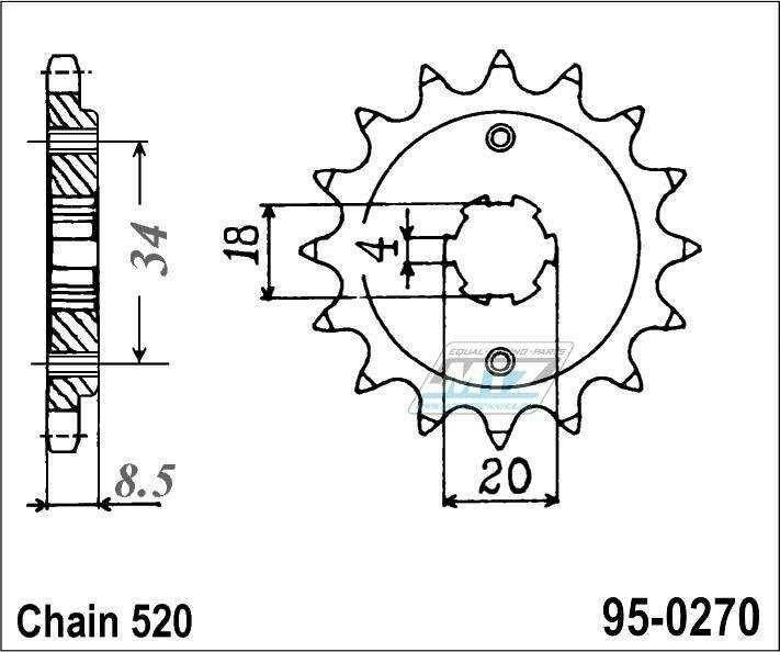 Kolečko řetězové (pastorek) 0270-13zubů MTZ - Honda CA125Rebel + CB250 Night Hawk + CBX250+CM250+CMX250 + CMX250 Rebel + Derbi 250DXR + Kreidler Mustang + Yuki 250 95-0270-13
