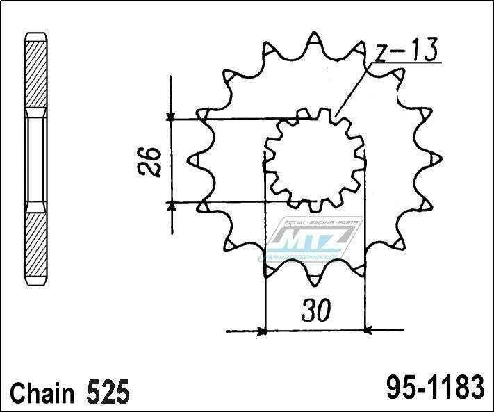 Kolečko řetězové (pastorek) 1183-18zubů MTZ - Triumph 800 America + 800 Bonneville + 800 Speedmaster + 865 America + 865 Bonneville + 865 Scrambler + 865 Speedmaster + 865 Thruxton 95-1183-18