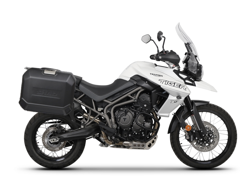 Kompletní sada černých hliníkových kufrů SHAD TERRA BLACK , 48L topcase 36L/47L boční kufry, včetně montážní sady a plotny SHAD TRIUMPH Tiger 800 TRIUMPH Tiger 800 2011-2021