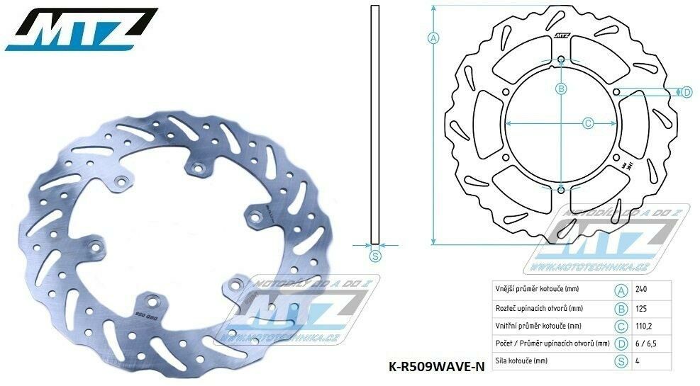 Kotouč brzdový MTZ nerezový - zubatý desing Wave - BETA RR125 / 18-20+RR250 / 13-20+Xtrainer250 / 18-19+RR300 / 13-20+Xtrainer350 / 15-19+RR350 / 13-20+RR390 / 15-20+RR400 / 13-14+RR450 / 13-20+RR498 K-R509WAVE-N