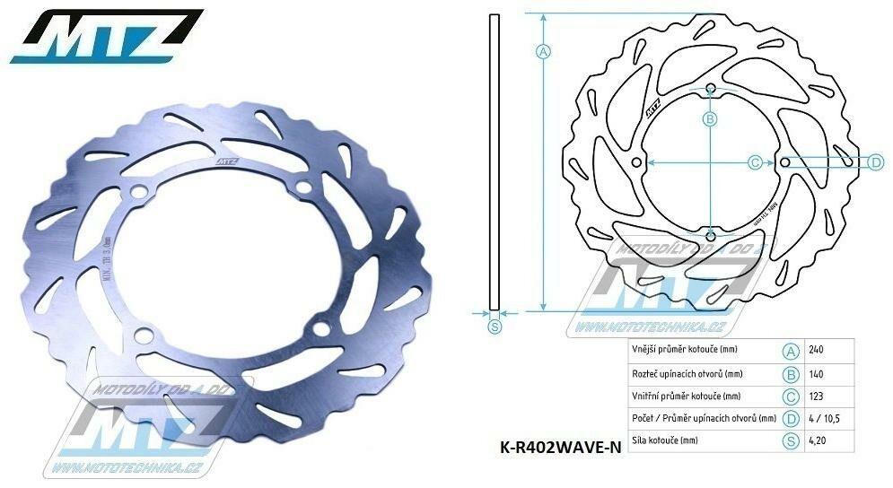 Kotouč brzdový MTZ nerezový - zubatý desing Wave - Suzuki RMZ250 / 07-24 + RMZ450 / 05-24 + RMX450Z / 10-19 + Honda CR125 / 98-01+CR250 / 97-01 K-R402WAVE-N