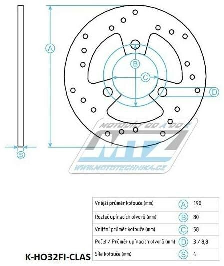 Kotouč brzdový (190/58/3D) - Honda Bali50+SKY50+Yupi+Bali100+CH125Spacy + MBK Booster50+Nitro50+Stunt50+Nitro100 + PGO PMS50+T REX50+PMS110+T REX110 + SYM Fidele+XPRO + Yamaha Aerox+Jog50R+NEOS+Slider K-HO32FI-CLAS