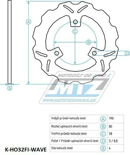Kotouč brzdový (190/58/3D) - Honda Bali50+SKY50+Yupi+Bali100+CH125Spacy + MBK Booster50+Nitro50+Stunt50+Nitro100 + PGO PMS50+T REX50+PMS110+T REX110 + SYM Fidele+XPRO + Yamaha Aerox+Jog50R+NEOS+Slider K-HO32FI-WAVE