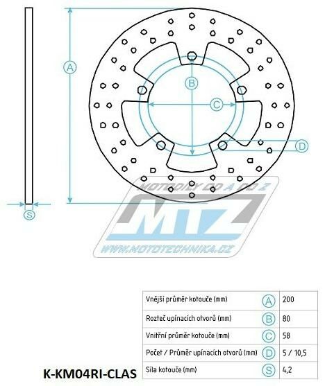 Kotouč brzdový (200/58/5D) - Kymco 125GrandDink / 01-07+150GrandDink / 01-07+200GrandDink / 01-06+250BetWin / 00-06+YUP / 03-06 K-KM04RI-CLAS