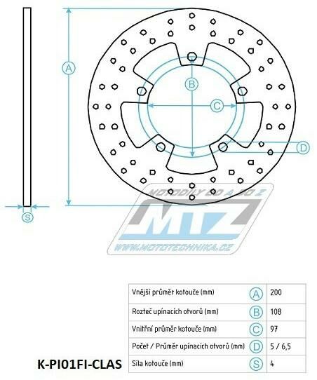Kotouč brzdový (200/97/5D) - Gilera DNA+ICE+Runner+FLY+Free + Malaguti Drakon + Piaggio FLY+Free+Hexagon+Sfera+Vespa+Zip K-PI01FI-CLAS