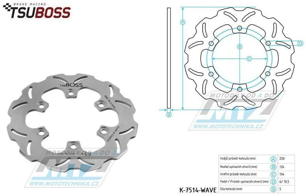Kotouč brzdový (230/104/6D) zubatý desing - Husqvarna 401Svartpilen + 401Vitpilen + KTM Duke125 / 11-17+RC125 / 14 +Duke200 / 12-17 + RC200 / 14-17 + Duke250 / 17- + Duke390 / 13- + RC390 / 14- K-7514-WAVE