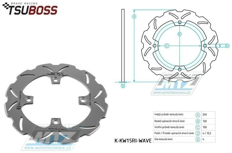 Kotouč brzdový (240/100/4D) - Kawasaki ZXR400 / 91-02+Zephyr550 / 93-01+ZZR600 / 93-06+GPX750R / 86-90+ZR7 / 99-03+ZR7S / 01-03 K-KW15RI-WAVE
