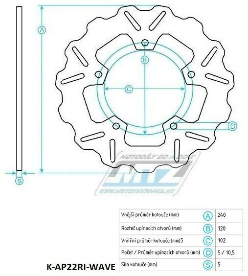 Kotouč brzdový (240/102/5D) - Aprilia MXV450 / 09-10+RXV450 / 05-11+SXV450 / 05-11+RXV550 / 05-11+SXV550 / 05-11 K-AP22RI-WAVE