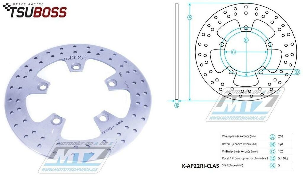 Kotouč brzdový (240/102/5D) - Aprilia MXV450 / 09-10+RXV450 / 05-11+SXV450 / 05-11+RXV550 / 05-11+SXV550 / 05-11 K-AP22RI-CLAS