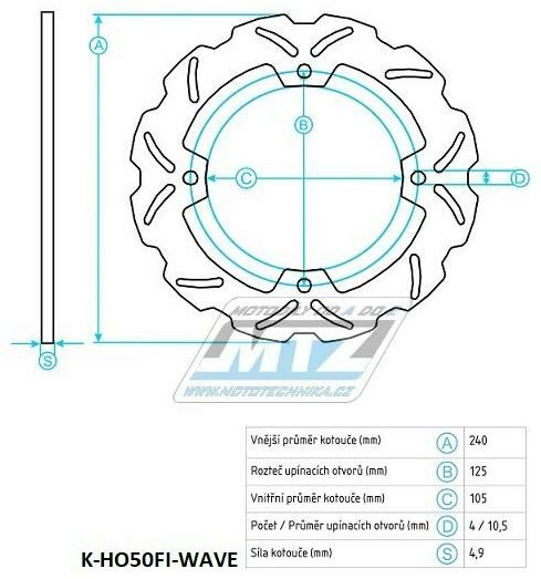 Kotouč brzdový (240/105/4D) - Honda FES125+SH125+Silver Wing 125 + FES150+SH150 + Foresight 250+Forza 250+Jazz 250 + Forza 300 + Peugeot SV250 K-HO50FI-WAVE