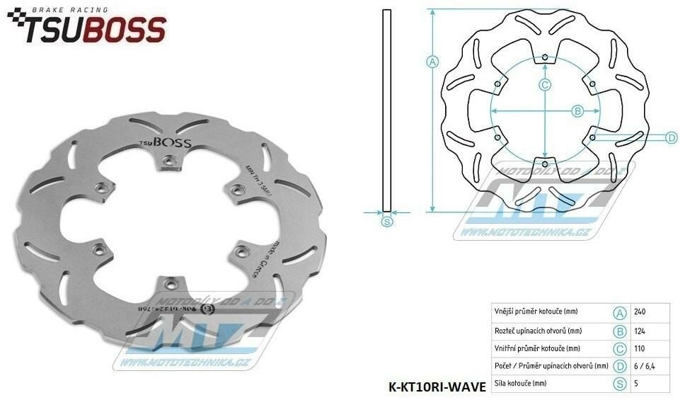 Kotouč brzdový (240/110/6D) - KTM 690 Enduro / 08-20 + 690 Supermoto / 07-11 + 690SMC / 08-20 + Super Enduro 950 / 06-08 + Adventure 990 / 06-07 + Husqvarna 701 Spermoto + 701 Enduro K-KT10RI-WAVE