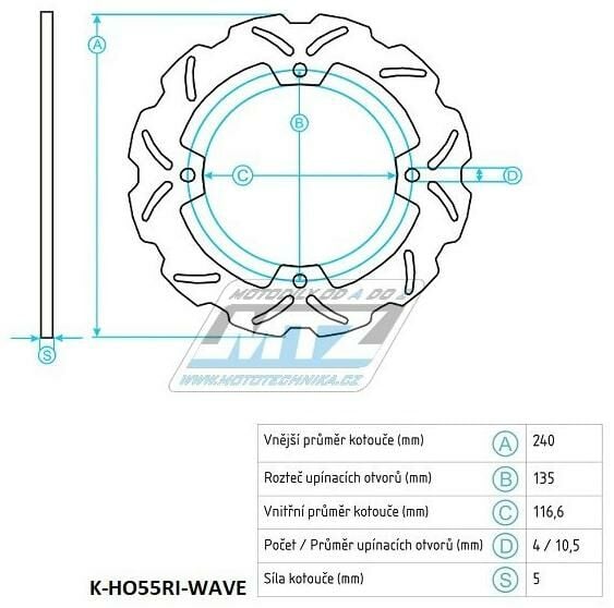 Kotouč brzdový (240/117/4D) - Honda CBF500 / 04-08+CB600F Hornet / 07-13+CBF600 / 04-07+CBF600N / 03-07CBF600S ABS / 03-07+CBF600S ABS / 03-07+CBR600F / 11-13+X-ADV750 / 17-19+CBF1000 / 06-11 K-HO55RI-WAVE