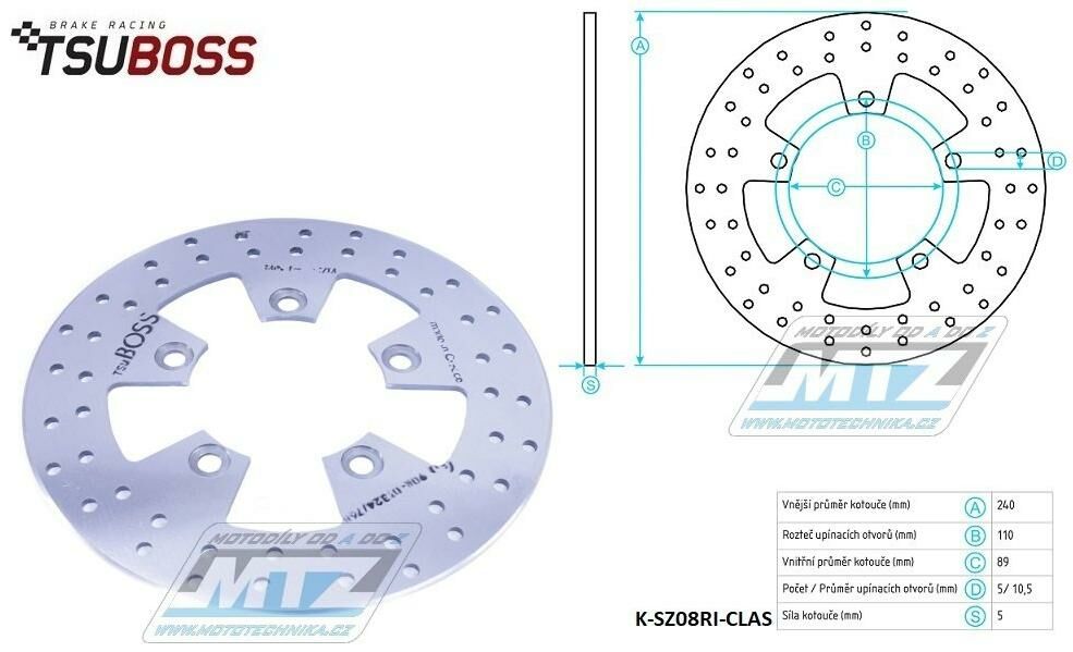 Kotouč brzdový (240/89/5D) kulatý desing CLASIC - Suzuki GSF600 Bandit+GSF650 Bandit+GSF1200 Bandit +SV650+GSX600F+GSX750F + GSX750R+GSX1100R + GSX1200 Inazuma+GSX1300R Hayabusa + RF600R+RF900+ Kawasa K-SZ08RI-CLAS