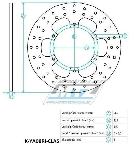 Kotouč brzdový (245/115/6D) - Ducati Monster+Strada+Multistrada+Supersport+SSport+ST+GT + Laverda Ghost+Sport+Formula+Sticke + MBK YP250 + Voxan + Yamaha YP250+SRX400+SRX600+FZR500+FZR600+XJR400+XJ600 K-YA08RI-CLAS