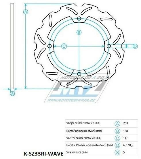 Kotouč brzdový (250/117/4D) - Suzuki AN650 Burgman / 02-04 K-SZ33RI-WAVE