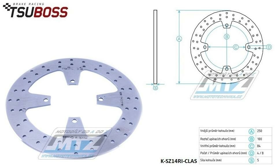 Kotouč brzdový (250/84/4D) - Suzuki GS400 / 89+GSF400Bandit / 89-96+GS500E / 89-03+GS500F / 03-07+GSX-F600 Katana / 88-97+GSX750 Katana / 89-92 K-SZ14RI-CLAS