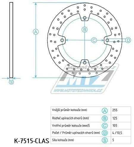 Kotouč brzdový (255/105/4D) kulatý desing - Triumph Tiger800+Tiger850+BonnevilleT100 + Street Cup900+Scrambler900+Street Twin900 + SpeedTriple1050+Sprint1050GT + Tiger Sport1050+Bobber1200+Bonneville K-7515-CLAS