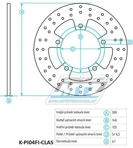 Kotouč brzdový (260/125/5D) - Gilera Nexus125-500 + Piaggio Beverly125-500+Carnaby125-300+X125EVO+X250EVO+X7125-300+X8125-250+X9180-500 K-PI04FI-CLAS
