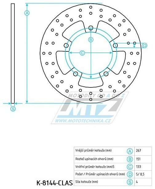 Kotouč brzdový (267/132/5D) - Yamaha YP125 X-Max / 06-13+YP250 X-Max / 06-13+YP400 Majesty / 04-11+YP400 X-Max / 13-19+XP500 T-Max / 04-07+XP530 T-Max / 12-19 K-8144-CLAS