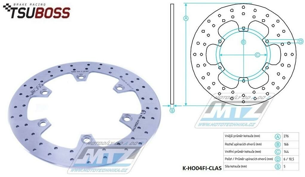 Kotouč brzdový (276/144/6D) - Honda XL600V Transalp / 87-96+FX650 Vigor / 99-00+SLR650 / 97-98+XBR500 / 85-89 + XLV750R / 83-85 K-HO04FI-CLAS
