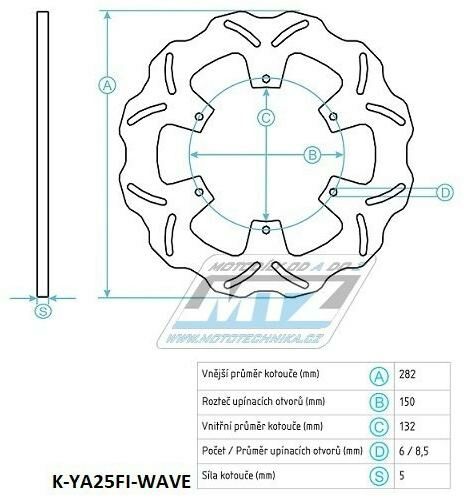 Kotouč brzdový nerezový (282/132/6D) - Yamaha TDR125 / 89+XT500E / 95+XP500T-MAX / 00-04+XT600E / 95-03+XTZ660Z Tenere / 91-99 (k-ya25fi-wave) K-YA25FI-WAVE