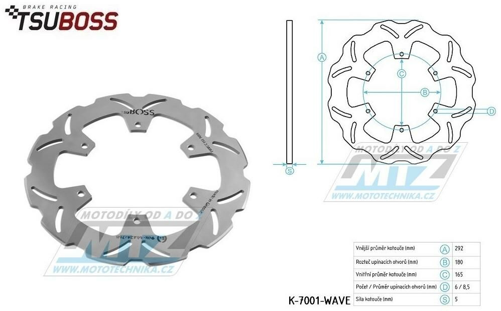 Kotouč brzdový (rozměry 292/165/6D) - Yamaha YZF-R125 / 14-20 + MT125 / 16-20 K-7001-WAVE