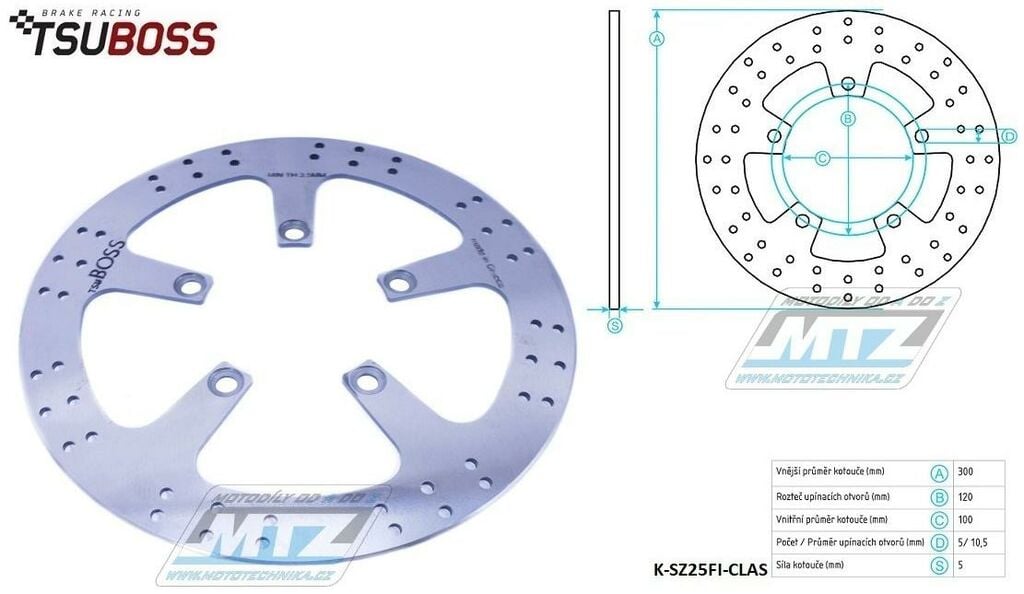 Kotouč brzdový nerezový (300/100/5D) - Suzuki VL1500 Intruder / 98-01 + VL1500 Boulevard C90 K-SZ25FI-CLAS