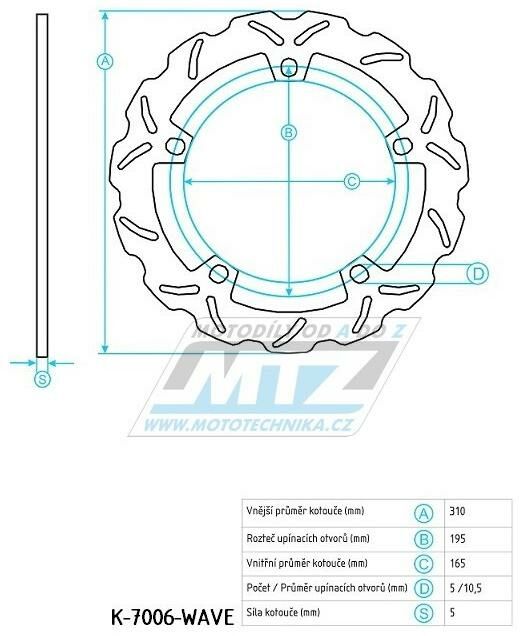 Kotouč brzdový nerezový (310/165/5D) - Honda VFR1200 Crosstourer/ 12-16 + GL1800 GoldWing / 14-16 (k-7006-wave) K-7006-WAVE