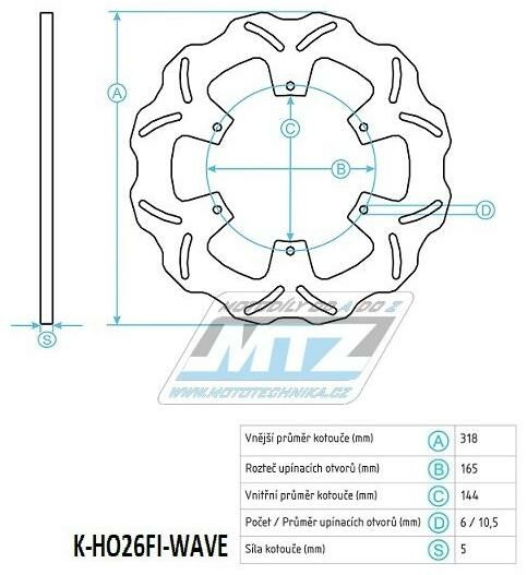 Kotouč brzdový (318/144/6D) - Honda VF250 Twin Magna / 97+NT650 Hawk / 88-90 + NTV650 Revere / 89-98+VF750C Magna / 94-03 + VT750 Shadow / 94-07+ST1100 / 96-01+VT1100 Shadow / 92-98 K-HO26FI-WAVE