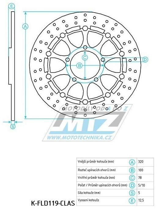 Kotouč brzdový nerezový (320/78/5D) - kulatý design - Triumph Speed Triple 1050R + Speed Triple 1050R ABS / 12-14 (k-fld119-clas) K-FLD119-CLAS