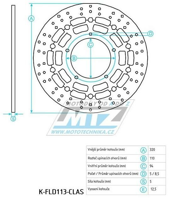 Kotouč brzdový nerezový (320/94/5D) - kulatý design - Honda VFR1200F / 10-17 + VFR1200F DCT / 10-17 (k-fld113-clas) K-FLD113-CLAS