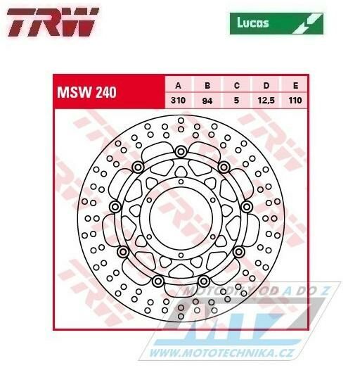 Kotouč brzdový plovoucí TRW MSW240 (310/94/6D) - kulatý design - Honda CBR600RR / 03-16 + CB1000R / 08-16 + CBR1000RR Fireblade / 04-05 + CB1300 LUMSW240