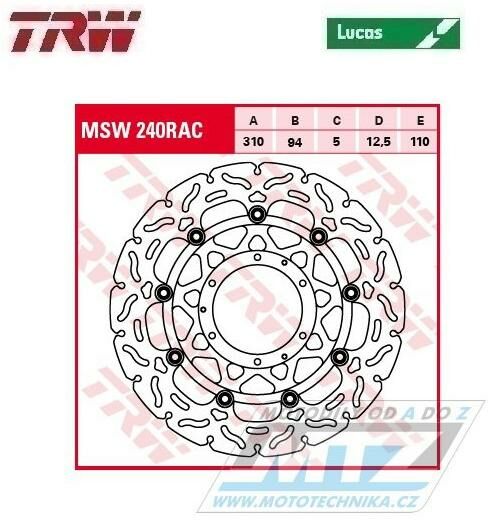Kotouč brzdový plovoucí TRW MSW240RAC-SP (310/94/6D) - zubatý design - Honda CBR600RR / 03-16 + CB1000R / 08-16 + CBR1000RR Fireblade / 04-05 + CB1300 (msw240rac) LUMSW240RAC-SP