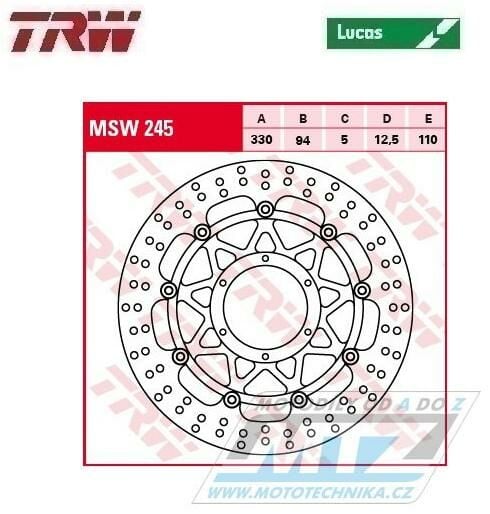 Kotouč brzdový plovoucí TRW MSW245 (330/94/6D) - kulatý design - Honda CBR900RR / 01-03 + CBR929RR Fireblade / 00-01 + CBR954RR Fireblade / 02-03 (msw245) LUMSW245