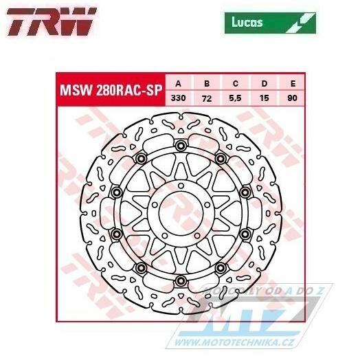 Kotouč brzdový plovoucí TRW MSW280RAC-SP (330/72/5D) - zubatý design - Ducati 848EVO / 12-13+Desmosedici1000 / 07-09 + Panigale+1098+Streetfighter + Monster1200 + Panigale1299 LUMSW280RAC-SP