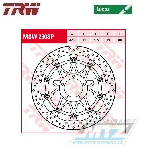 Kotouč brzdový plovoucí TRW MSW280SP (330/72/5D) - kulatý design - Ducati 848EVO / 12-13+Desmosedici1000 / 07-09 + Panigale+1098+Streetfighter + Monster1200+Multistrada1200 + Panigale1299 (msw280sp) LUMSW280SP