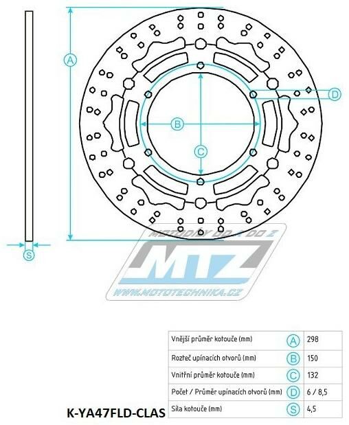 Kotouč brzdový (298/132/6D) - Yamaha WR125X / 09-16+XT660R / 04-16+XT660ZTenere / 08-16 K-YA47FLD-CLA