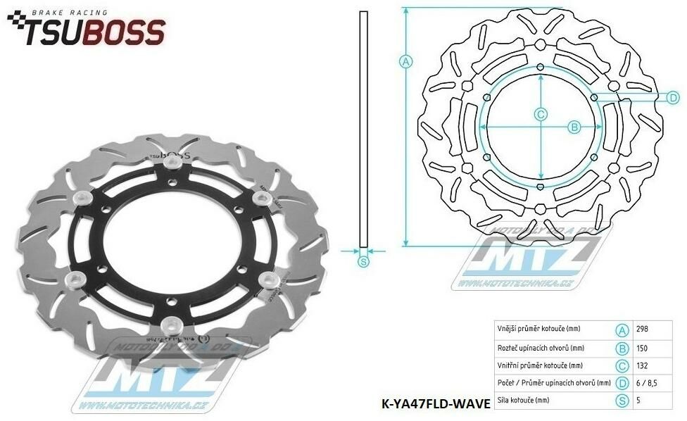 Kotouč brzdový plovovoucí (298/132/6D) zubatý desing - Yamaha WR125X / 09-16+XT660R / 04-16+XT660ZTenere / 08-16 K-YA47FLD-WAV