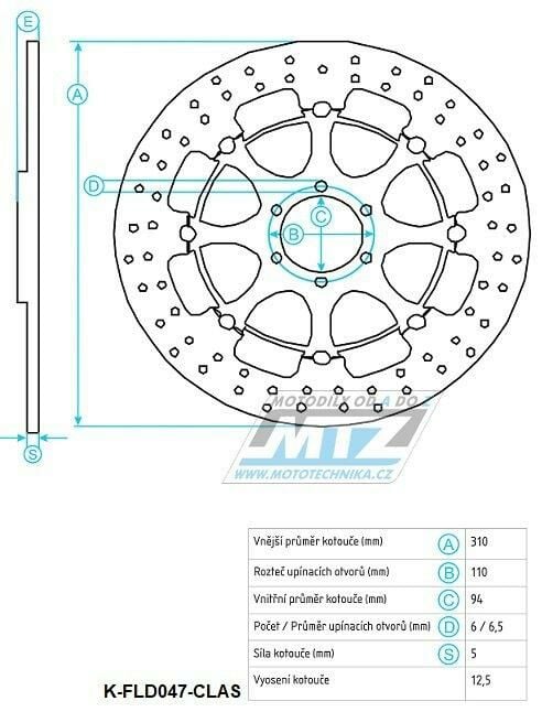 Kotouč brzdový plovovoucí nerezový (310/94/6D) kulatý desing - Honda CBR600RR / 03-17+CB1000R / 08-17+CBR1000RR Fireblade / 04-05+CB1300 Superfour / 03-08 K-FLD047-CLAS
